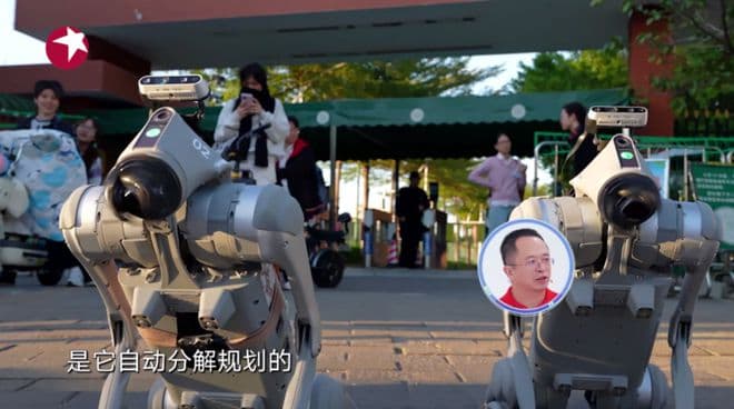 首期节目中,选手梁小丹带来的两只名叫“旺财”“来福”的机器狗凭借其“高智商”成功出圈,在“未来中国节目”视频号收获超3万点赞量。对于外出买榴莲这个任务,“旺财”和“来福”首先将其拆解为诸多可执行步骤,再逐个克服可能遇到的难关:首先是选择支付方式,接下来智能规划路线,并在灵活穿梭于人群的过程中,与孩子们亲切互动,最终成功与店员“讨价还价”买到高品质榴莲。