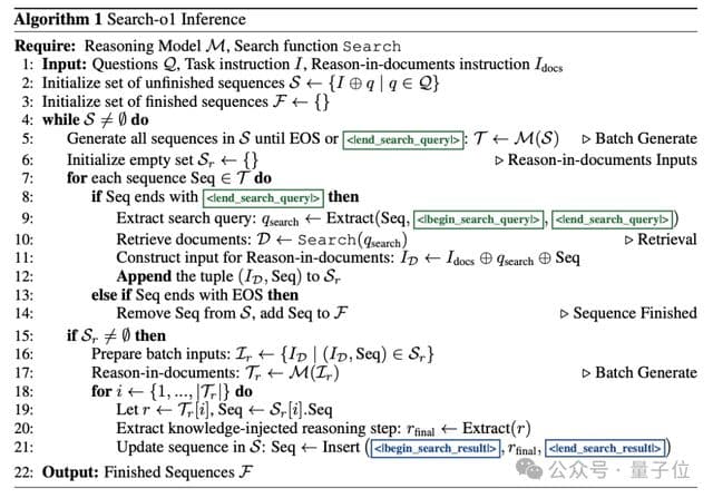 Search-o1的解题思路是:暂停推理,去搜索查找缺少的知识/资料,然后再回来继续推理。