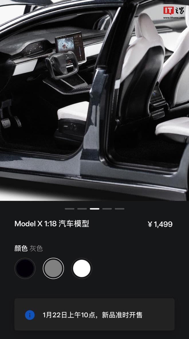 IT之家 1 月 18 日消息,特斯拉现已在其App中上架了2024款Model S / X车型的车模,定价均为1499元,其中Model S可选灰 / 黑 / 红配色,Model X可选黑 / 灰 / 白配色,两款车模均将于1月 22日上午10点开售。