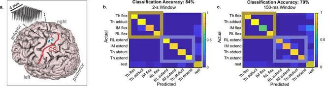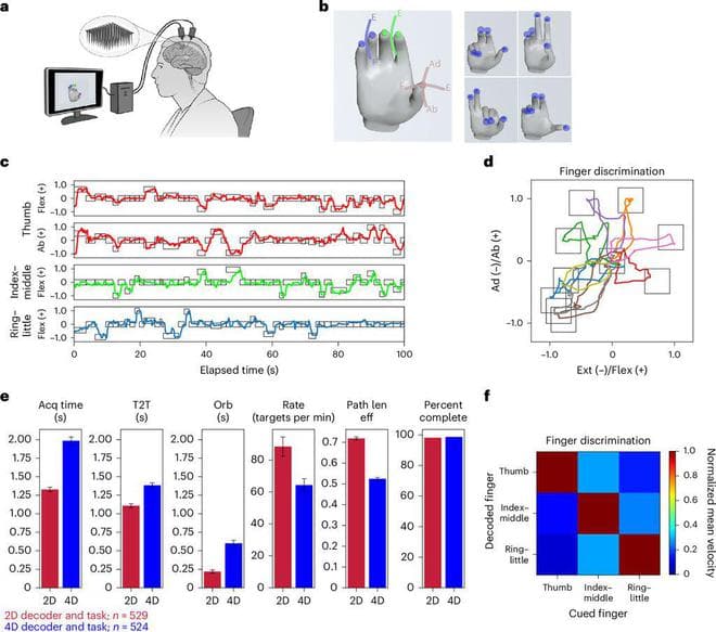 该控制系统使用了 Blackrock Neurotech 公司的 BCI,该系统包含 192 个植入运动皮层(负责手部运动)的电极。