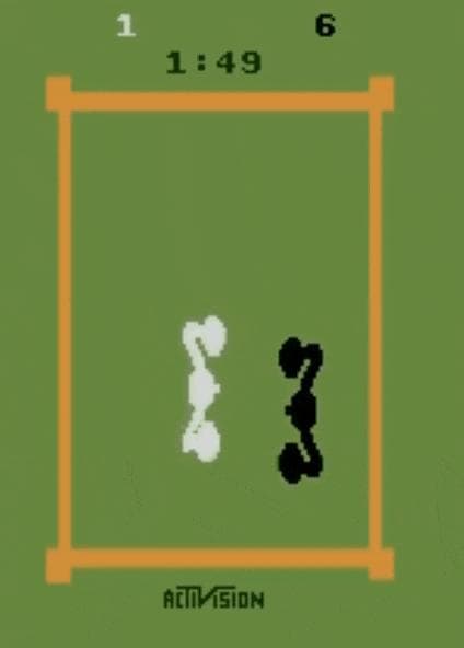 在「Boxing」拳击游戏中,玩家控制白色角色,通过击打黑色对手角色来获取得分。