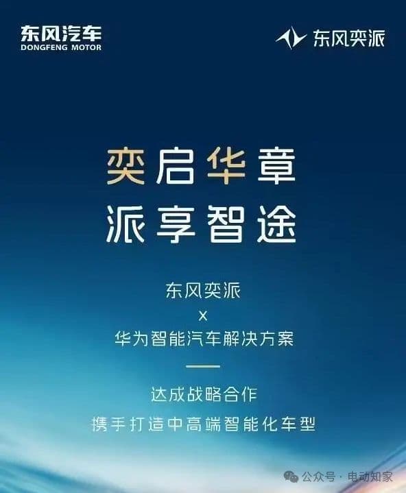 电动知家消息,1月22日,东风奕派宣布与华为智能汽车解决方案正式达成战略合作,双方将在智能汽车产品开发、营销及生态服务等领域进一步深化合作,联手打造中高端智能化车型。