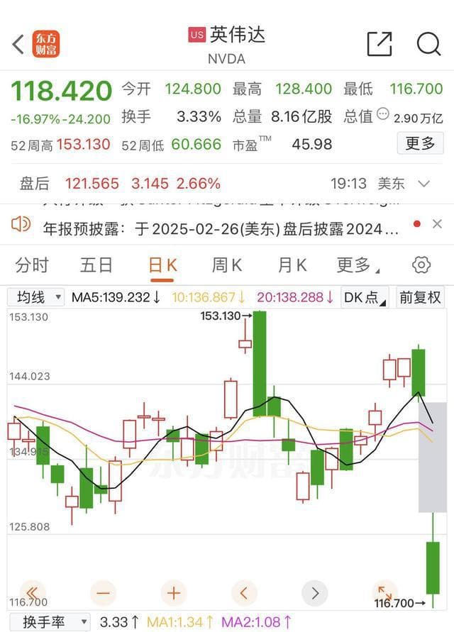 DeepSeek冲击波还在持续,而且已经从科技圈蔓延至资本圈,全球投资者明显受到巨大的影响,开始用脚投票,短期投机资金纷纷跑路。当地时间周一,先受到冲击的英伟达下跌16.86%,创历史上最大单日个股蒸发规模,市值蒸发5888.62亿美元(约合人民币4.27万亿元)