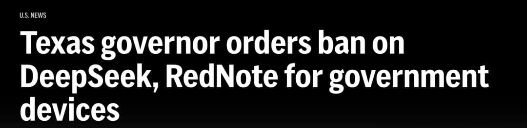 日前,美联社消息称:美国德克萨斯州,已禁止在政府设备上使用应用程序小红书和DeepSeek。