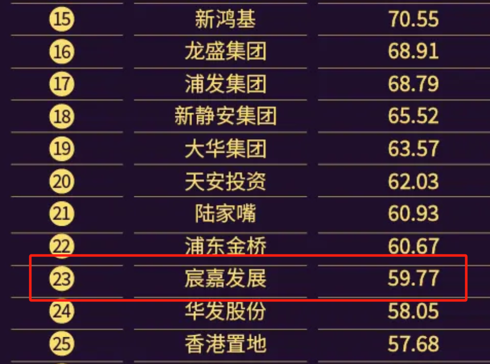 根据克而瑞发布的《2024年1-9月上海房企全口径金额排行榜》,今年前9月,宸嘉发展在上海的全口径金额为59.77亿元,位列榜单第23。