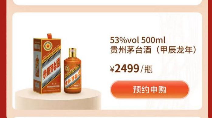 6日晚19时—21时,i茅台举行“玉兔辞旧·龙腾九霄”辞兔迎龙专场活动。平台投放了甲辰龙年贵州茅台酒和癸卯兔年贵州茅台酒各9999瓶,i茅台实名认证用户可进入活动页面进行申购。活动结束后,癸卯兔年贵州茅台酒(简称“兔茅”)从i茅台下架,“龙茅”正式上架。