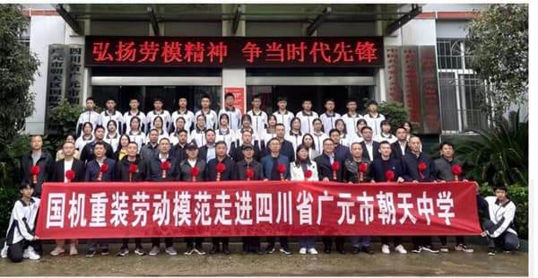 在朝天中学,党的十九大代表、国机集团劳动模范白树华和国机重装劳动模范叶林伟两位80后劳动模范代表,分别以“树技能梦想,做时代新人”“秉持匠心,不忘初心,奋力擎起航空报国使命”为主题,与100余名师生分享成长故事,讲述对劳模精神、劳动精神、工匠精神的深刻感悟。