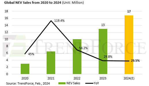 TrendForce further notes that China remains the largest market for NEVs, commanding about 60% of the global market share.