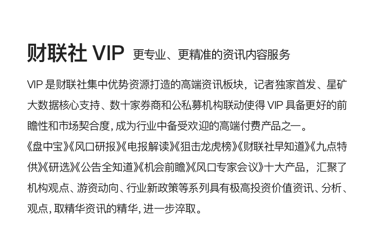 注:财联社VIP为内容资讯产品,并非投资建议。以下内容仅为资讯价值展示非对相关公司的推荐建议,非未来走势预测。投资有风险,入市需谨慎。