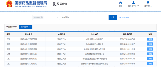藿香正气类产品批文(图片来源:国家药监局)