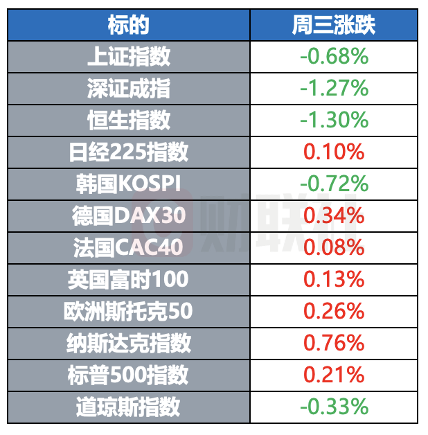 全球主要指数周四涨跌各异,美股三大指数仅道指下跌,道指连续四个交易日下跌,标普500指数小幅上涨,结束了连续三日的下跌。