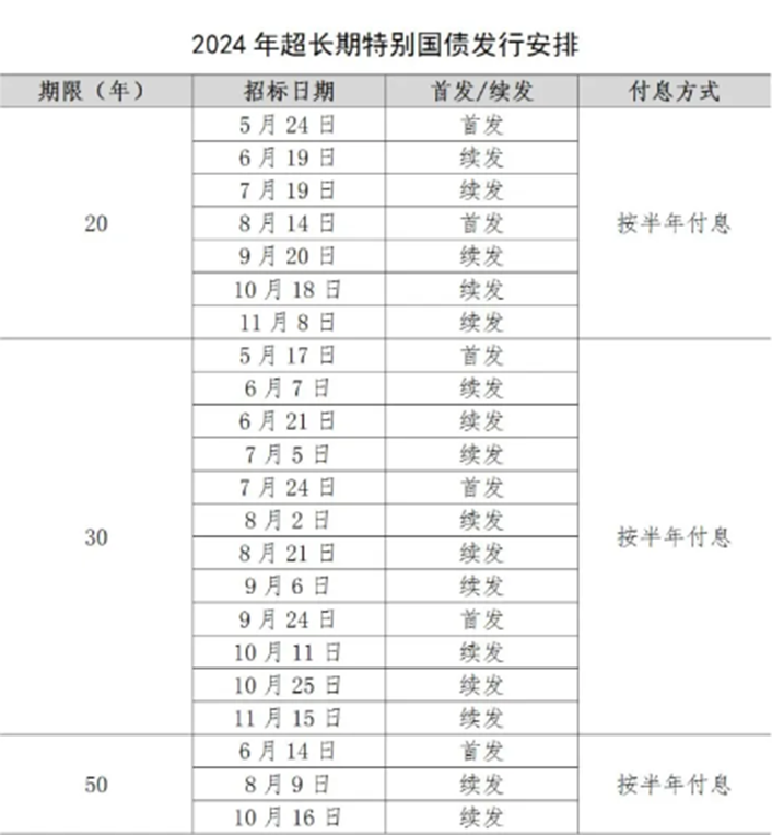 据了解,财政部办公厅于5月13日发布的《关于公布2024年一般国债、超长期特别国债发行有关安排的通知》中明确了今年超长期特别国债的全年计划分6期共22批次。截至今日,已发行了20批次超长期特别国债共计9150亿元,其中30年期发行规模最大达到5500亿元,占比60.11%。