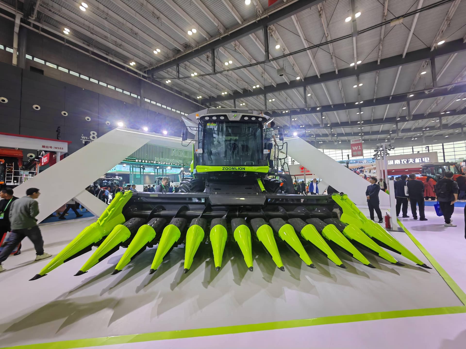 “这台TF220谷物联合收割机是目前国内最大喂入量、最大马力、最大割幅、最大粮箱谷物联合收获机,不仅可以收割玉米、大豆、小麦等多种作物,实现一机多用;还采用了复合脱粒+大面积清选系统,在满足高效作业的同时,把籽粒损失降至降低至0.6%以下,大大超过当前国家标准要求;更兼具地面坡度自动仿形、自动调整参数、智能辅助驾驶等智能技术。”中联重科(000157.SZ)展区工作人员指着面前一台绿色“巨无霸”介绍称。