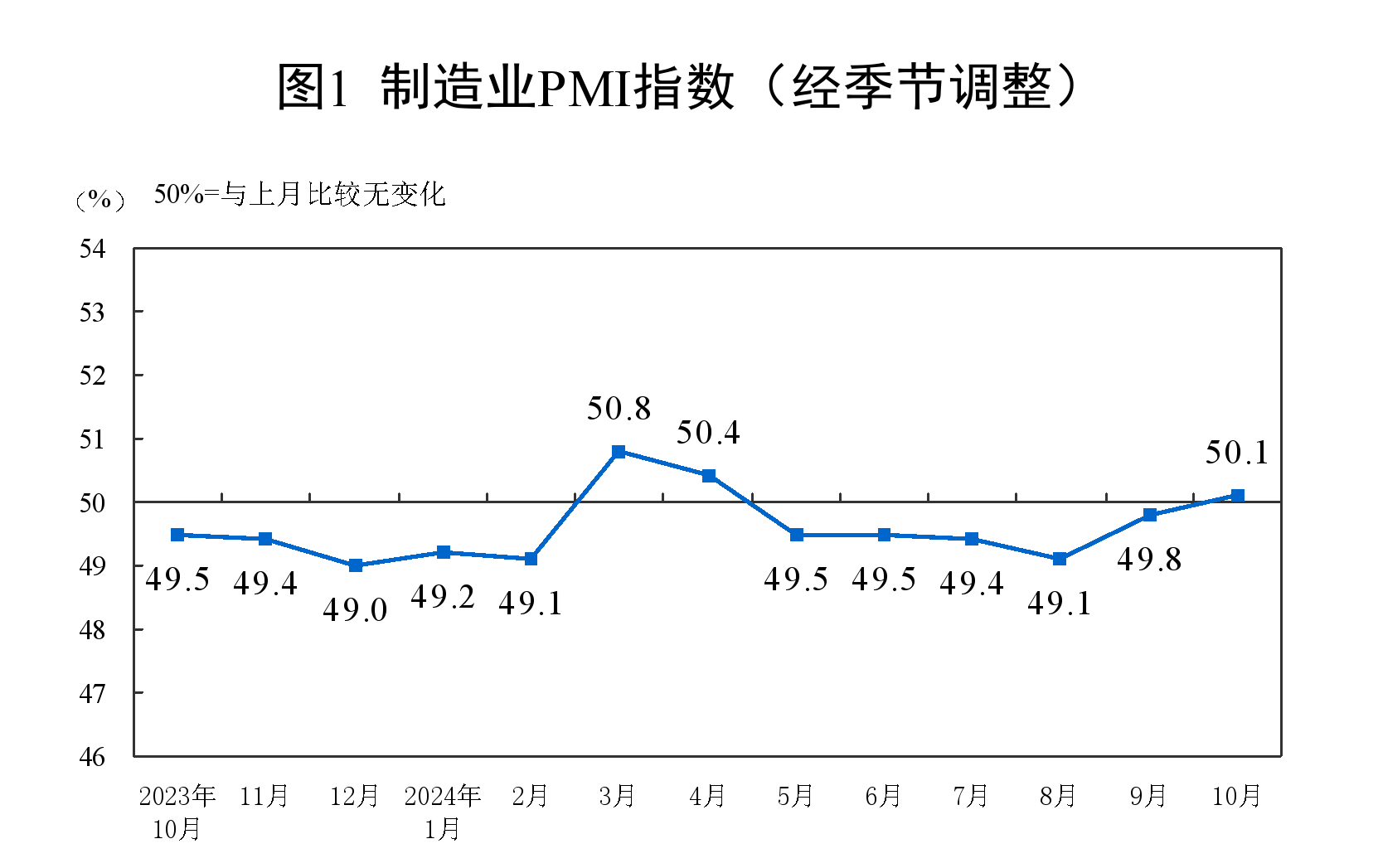 国家统计局:10月制造业PMI为50.1% 比上月上升0.3个百分点