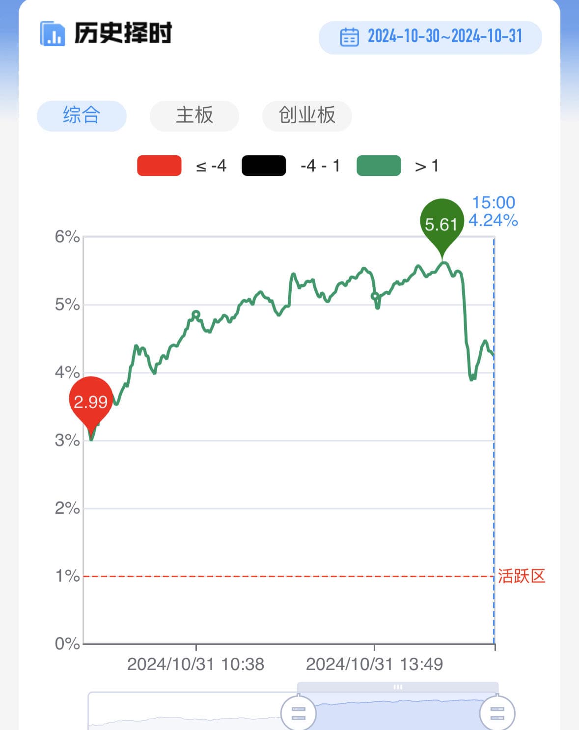 虽然尾盘高位股的集体跳水对于短线情绪一定程度的回落,但短线情绪指标依旧全天保持于活跃区之上。