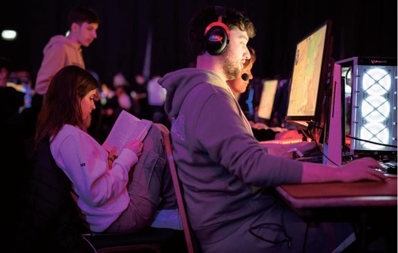 2023年2月25日,英国凯特灵。在一个活动中,一名女子在电子竞技选手参加游戏锦标赛时读书。(图/视觉中国)