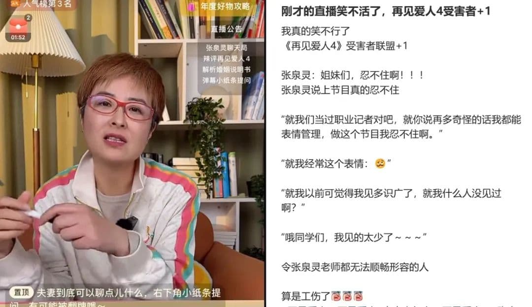 作为嘉宾,张泉灵录制过程中全程沉浸式憋屈,比其它看节目吃瓜的网友承受了更多,逼得她下节目还要单开小红书直播一吐为快:“没有流通性的钱,它不是钱,谁可以告诉黄圣依这件事情?”