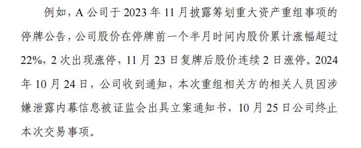 上交所表示,筹划并实施重大资产重组的过程通常耗时较长,涉及人员众多,内幕信息防控极为重要。 “并购六条”强调从严惩治并购重组中的内幕交易违规行为,维护并购重组市场秩序。