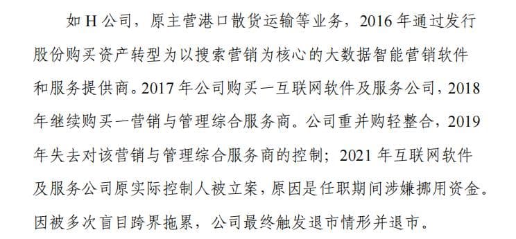 上交所所提出的案例,涉及港口运输与互联网服务的跨界、以及收购后标的公司隐瞒信息的具体事件。