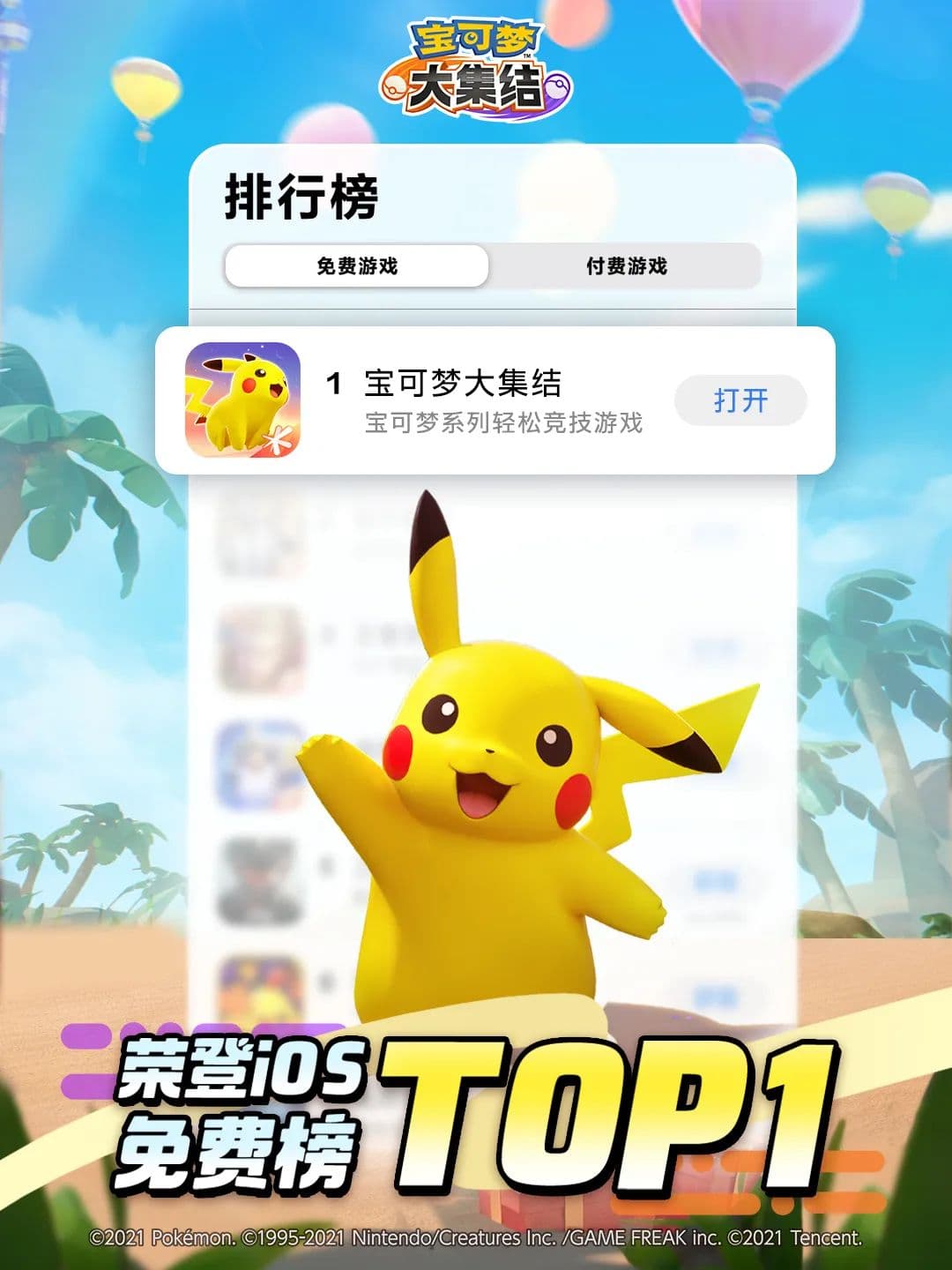 在此之前,海外发行的《宝可梦大集结》一度是Switch平台下载量最高的国产游戏,还曾摘得“2021Google Play年度最佳游戏”大奖。如今国服千呼万唤始出来,《宝可梦大集结》自然是没什么悬念地登顶了App Store免费榜。