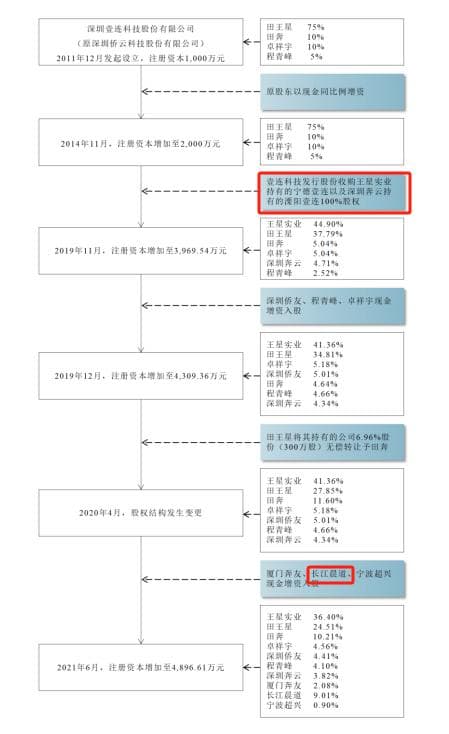 尤其是,两者的合作已进一步深化到股权层面后,壹连科技获利更加明显了。2021年,宁德时代全资子公司合伙参股的投资公司长江晨道,领投了壹连科技。截至今年10月底,长江晨道持有壹连科技9.01%的股份,为第四大股东。