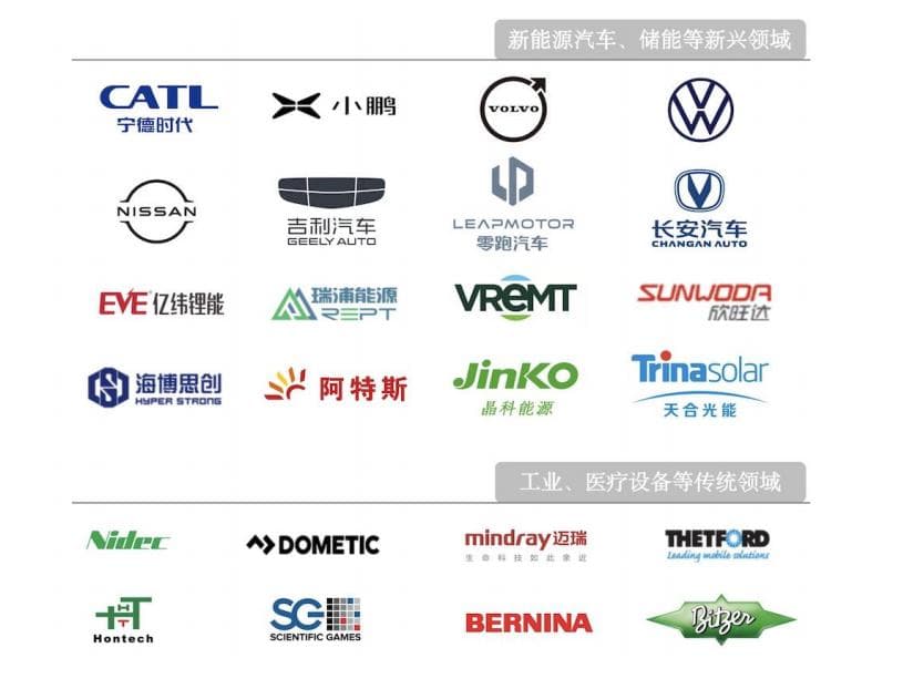 同时,包括沃尔沃、大众、日产、吉利汽车、零跑汽车、长安汽车等知名新旧势力车企,以及威睿电动、欣旺达、阿特斯、晶科能源、天合光能等新能源重要供应商企业也都是壹连科技日渐丰富的客户网中一员。