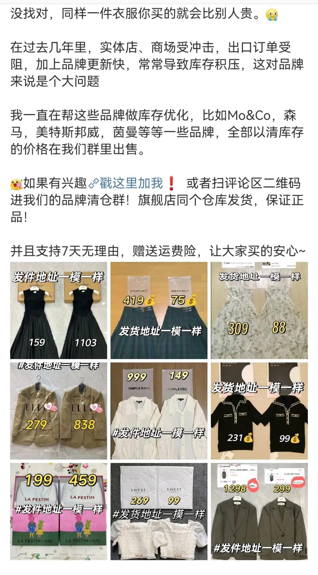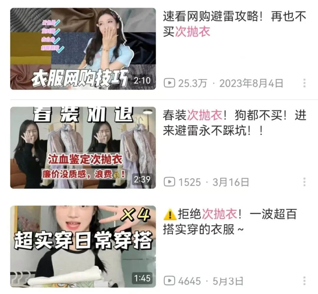 再加上爆款抄袭泛滥,一件衣服总能卷出超乎你想象的价格更低、质量也更垃圾的“版本”。消费者也分不清真假,像女装这种非标品,想买到一家价格和质量匹配合理的衣服,难度堪比鱿鱼游戏。