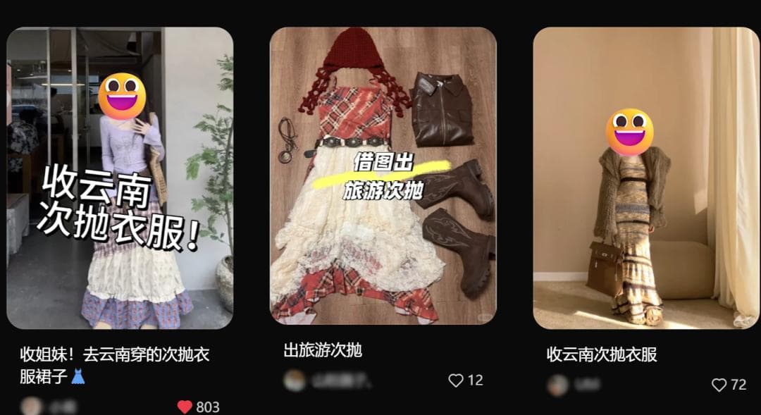 在去云南旅游前,路路就在闲鱼上随手下了两条好出片的裙子,一共花了五十块。一开始她没对实物抱有多高的期待,说白了是图个新鲜,想到那儿拍照换着穿。拿到次抛裙后,她发现它们和淘宝上卖的质量大差不差,简单说,就是都不咋地。