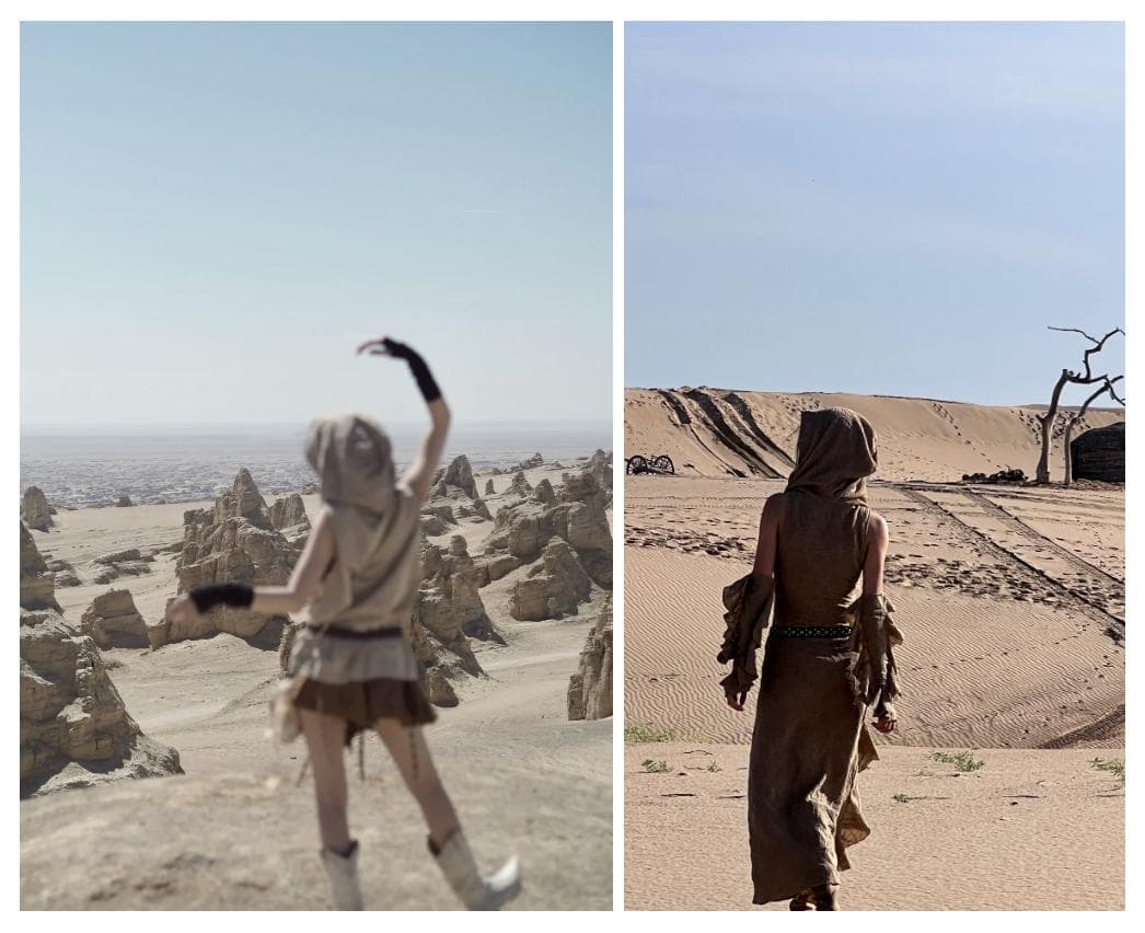 西北旅游则突出一个末日废土风,只消买条带兜帽的卡其色长袍就能哐哐出片……