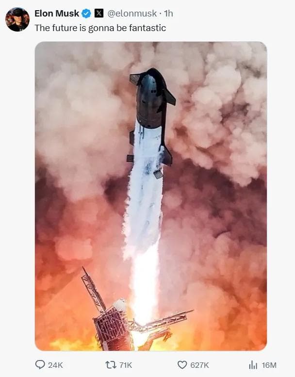 马斯克也十分识趣,在X平台上“刷火箭”,庆祝特朗普获选。