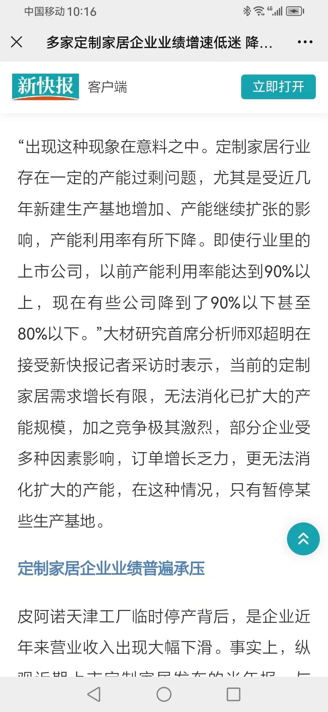 产能过剩,有上市公司关停生产线,定制家居是否还有增长点