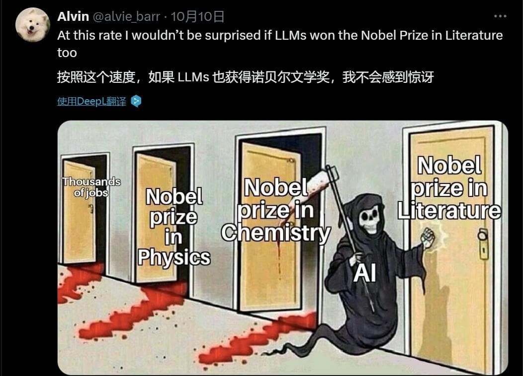 AI 学者拿下诺贝尔物理学奖、化学奖后,网友纷纷揶揄说: