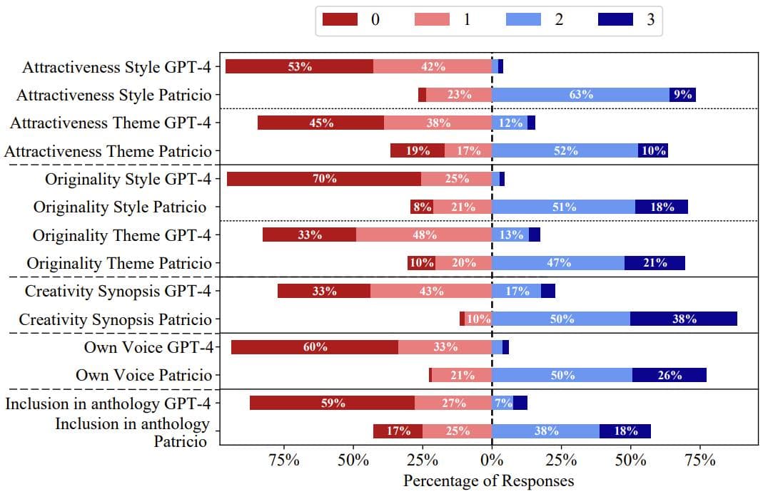结果嘛... AI 被人类作家按在地上摩擦!特别是在文风和创意这块,连专业文学评论家的及格线都没到。