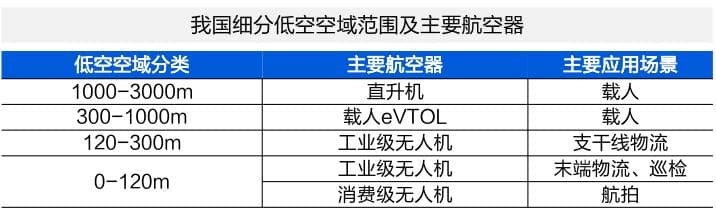 通常情况下,低空经济是依托1000米以下,部分特殊区域可延升至3000米以下空域,以各种有人驾驶和无人驾驶航空器的低空飞行活动为牵引,辐射带动相关领域融合发展的综合性经济形态,既包含通航、警用和军用等传统领域,也包括使用电动垂直起降飞行器(eVTOL)为主的城市空中交通(UAM)等新兴应用场景。