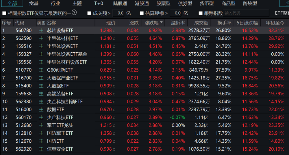 半导体材料设备ETF领涨