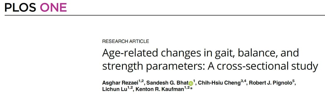 这项有趣的研究发表于《PLOS One》,研究了40名参与者(一半为65岁以下,一半为65岁以上)的力量、平衡和步态。研究的核心问题在于:哪些指标随年龄退化最快?什么才是判断身体老化的最佳指标?