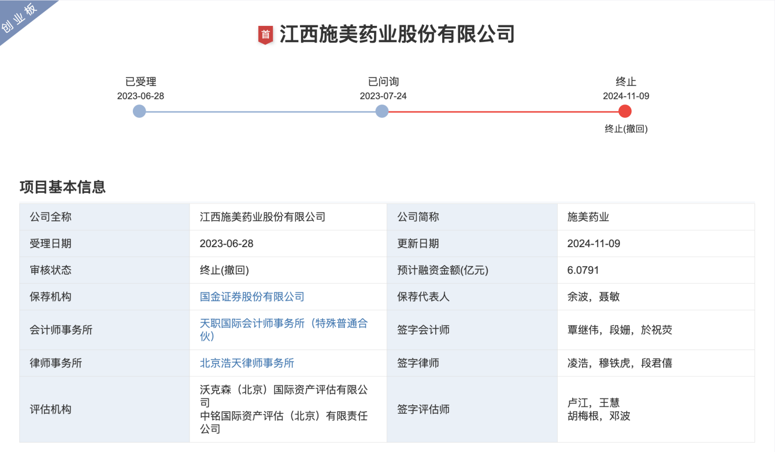 11月9日晚,深交所公告,因创业板IPO施美药业与保荐机构国金证券撤回上市申请,深交所决定对发行人终止审核。除主动撤单的因素外,在年内于8月16日被证监会罚款并暂停证券服务业务的天职国际正是发行人本次申请上市的会计事务所,或也是另一重要因素。