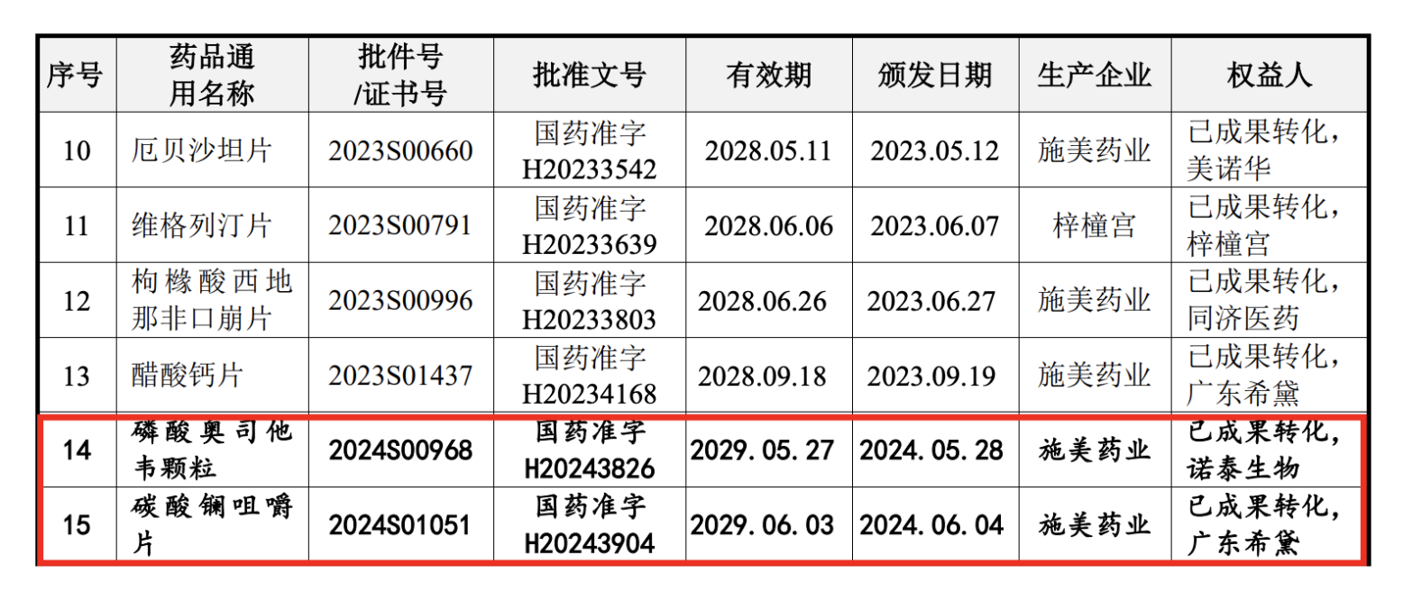 记者在翻阅最新招股书发现,对于同济医药上诉有关未变更MAH权益的情形在其他权益人身上存在相同情况,与招股书披露信息或为不符。公司在招股书中表明,2项非布司他片的药品注册证书权益人已转为兰花药业,磷酸奥司他韦颗粒已转换成诺泰生物,碳酸镧咀嚼片已转换成广东希黛。但上述4项相关信息与国家药品监督管理局披露的却不一致,截至目前,4项药品的权益人均如上图所示,仍为施美药业。公司未变更MAH权益的情形或不止一次。