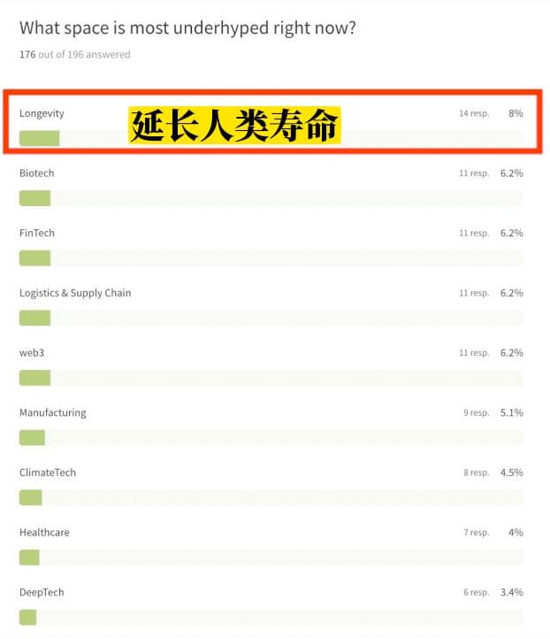 在近期发布的2023Q1新兴VC基金管理人调查报告中,91/185位基金管理人将AI & ML(机器学习)列为当前泡沫最大的投资方向。那么,与之相对,最被忽略的投资方向是什么?出人意料的是,延长人类寿命的课题被选为第一。这背后,是越来越难以忽视的人口老龄化问题。