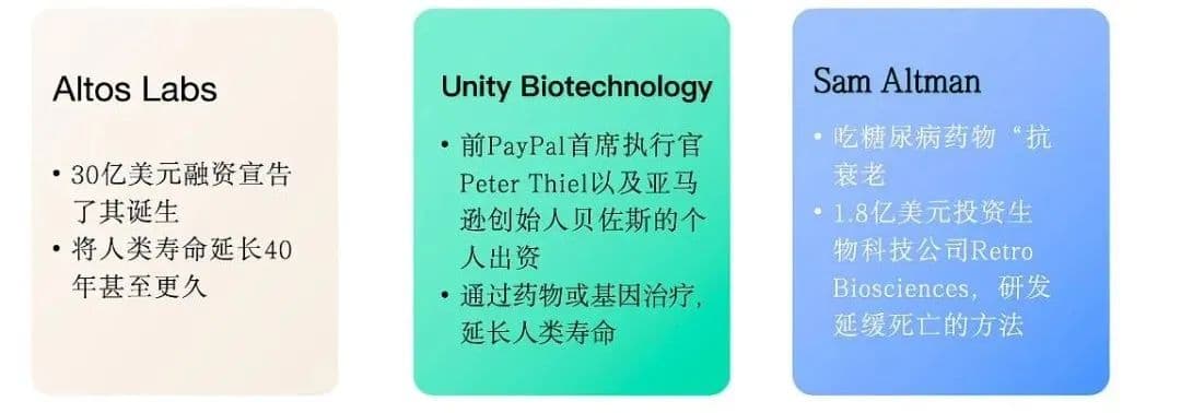 还有 OpenAI 的首席执行官Sam Altman已经早早地开始通过吃糖尿病药物“抗衰老”了,这种方法据说在硅谷已经流行多年,不过并没有得到专业人士的认定。除了吃药物抗衰老,它还大手笔花了1.8亿美元投资生物科技公司Retro Biosciences,研发延缓死亡的方法。