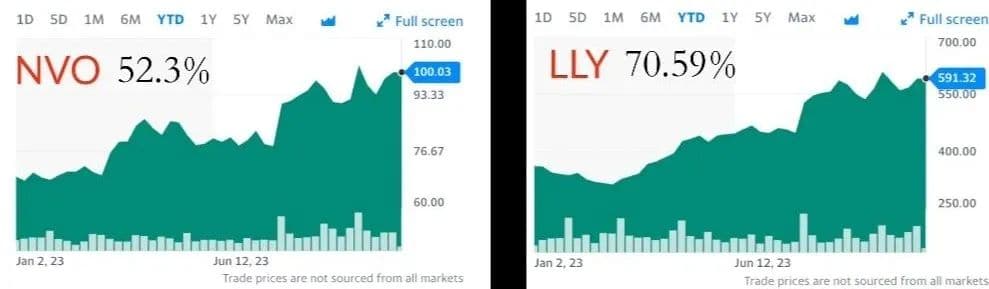 因此,保持合理的体重对于健康和长寿至关重要。近年来,随着肥胖率的上升,减肥药的市场也越来越大。美股减肥药概念股诺和诺德(NVO)和礼来(LLY)在去年美股市场中表现非常靓丽。分别涨52.3%,LLY涨70.59%。