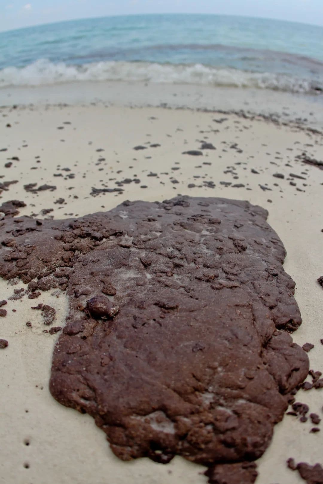 当时人们初步猜测,这种球应该是石油泄漏后在水里产生的焦油球,这是一种近年来经常会出现在海滩上的水生污染物。漂浮在海上的石油有着较强的黏性,就会黏附各种其他杂志,在海浪的冲刷下形成团块,也经常会出现在海滩上,甚至粘在人脚上。