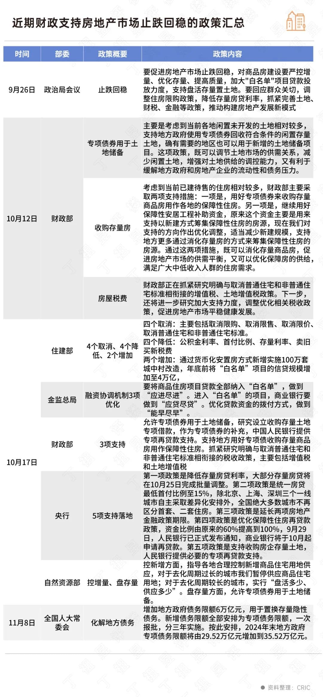 此次财政增量政策是9·26政治局会议后各部委一系列重要政策措施中财政支持政策的延续,其中政治局会议明确要求“促进房地产市场止跌回稳”,对改善房地产市场预期尤为关键。
