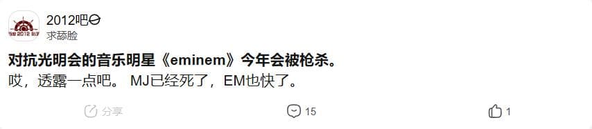 歌词也是啊,Eminem 写的多首歌曲《 Not Afraid 》、《 25 to life 》就被认为是对光明会的公开反抗。