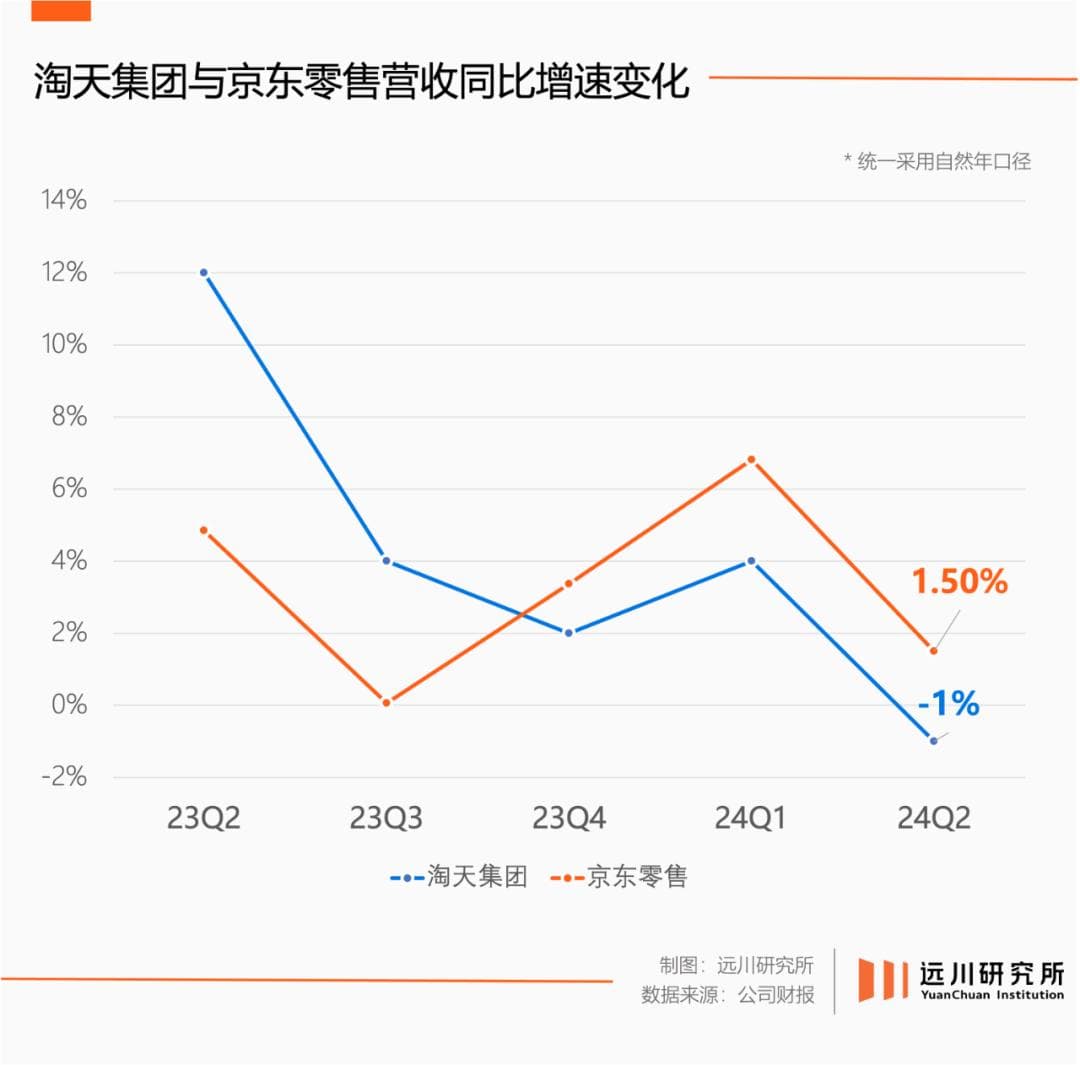 二季度财报出炉,京东零售和淘天集团的收入同比增速分别是1.5%和-1%。