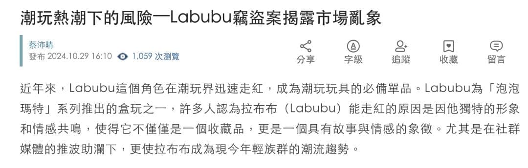在高雄,甚至有人偷走了80个Labubu进行倒卖。