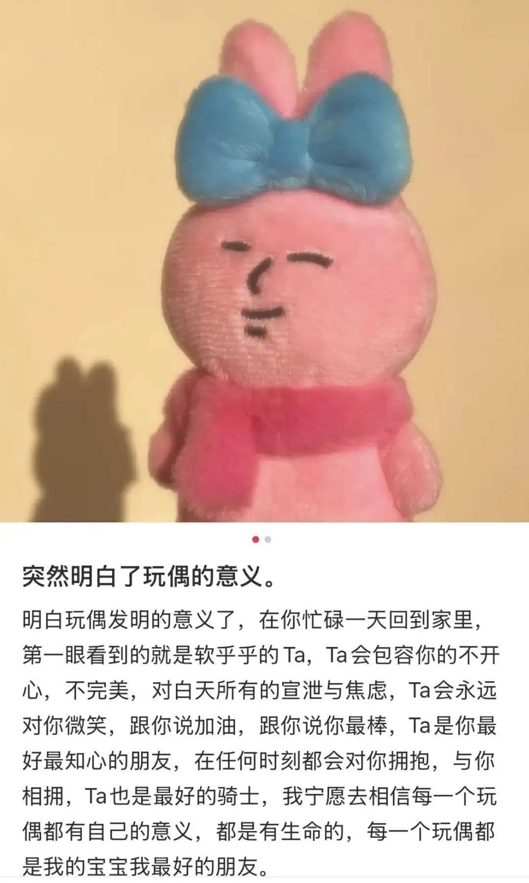 “每一个难熬的夜晚,抱着熟悉的玩偶,才敢卸下平日里的坚强和伪装”。