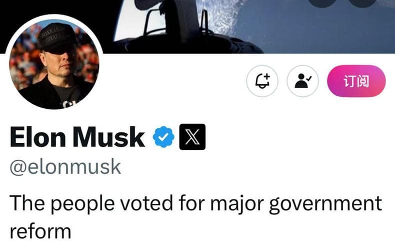 看到众人对特朗普的祝贺,马斯克在X平台回复了苹果CEO库克、微软CEO Satya Nadella, 并为亚马逊CEO Andy Jassy、谷歌CEO Pichai的发言点赞。 他甚至还在个人简介中置顶: America is a nation of builders. Soon, you will be free to build.(现在又改了)。