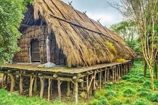新石器时期,建筑分南北两大系。北方的房屋,从半地穴居发展为地上的木骨泥墙圆形房子和方形房子;南方的房屋,则从巢居发展为兼用榫卯和绑扎的干栏式建筑。