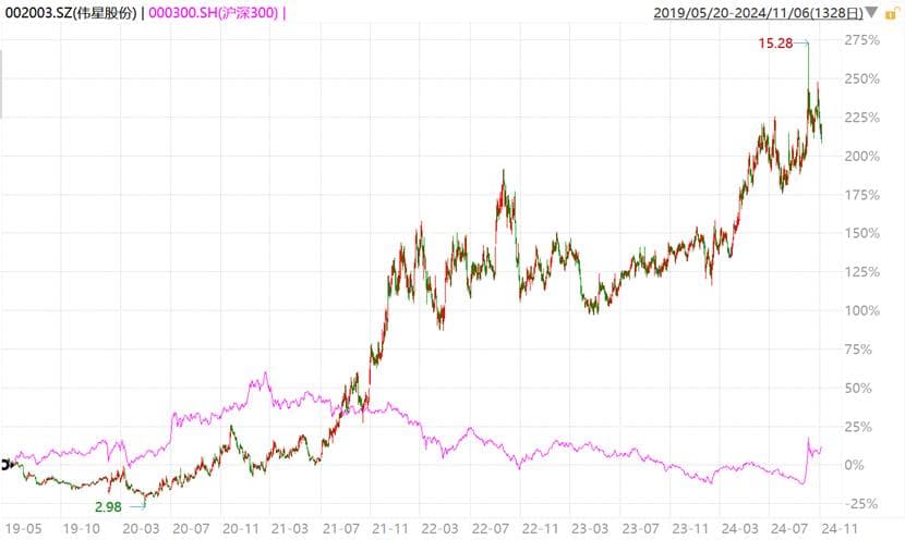 伟星股份VS沪深300指数走势图,来源:Wind